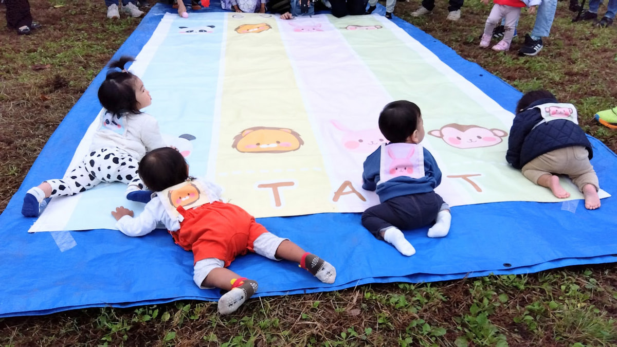 週末あか・ちびハイハイレースは、毎月1回ハイハイ期の赤ちゃん向けに、屋外でハイハイレースを開催します。